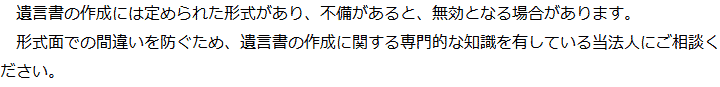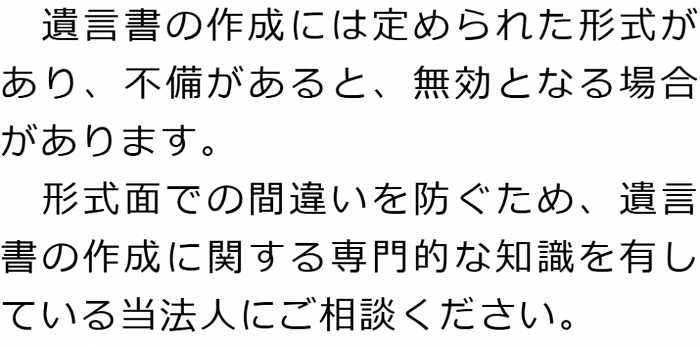 トップ業務内容遺言 階層構造▼ 業務内容(目次) 遺言 業務内容(目次)業務内容トップ行政書士法人心の業務内容遺言遺産整理相続人調査相続財産調査遺産分割協議書の作成預金・貯金の解約・名義変更証券口座の解約・名義変更自動車の名義変更心グループのその他の業務内容家族信託・民事信託節税対策事業承継遺言の検認相続放棄限定承認遺産分割遺留分侵害額請求相続登記相続税申告相続税調査 受付時間 平日 9時~21時、土日祝 9時~18時 夜間・土日祝の相談も対応します (要予約) 所在地 〒277-0005 千葉県柏市柏4-2-1メットライフ柏ビル3F(旧表記:リーフスクエア柏ビル3F) 0120-2403-39 お問合せ・アクセス・地図